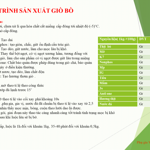 Công thức sản xuất GIÒ BÒ NGON do chính các kỹ sư của VMCGROUP sáng tạo và cải tiến không ngừng nhằm đem đến cho quý vị các sản phẩm ngày càng hoàn hảo hơn! Nâng cao được sức cạnh tranh và tạo ra sự khác biệt về chất lượng so với các cơ sở trong ngành! Hãy cùng nghiên cứu nhé!