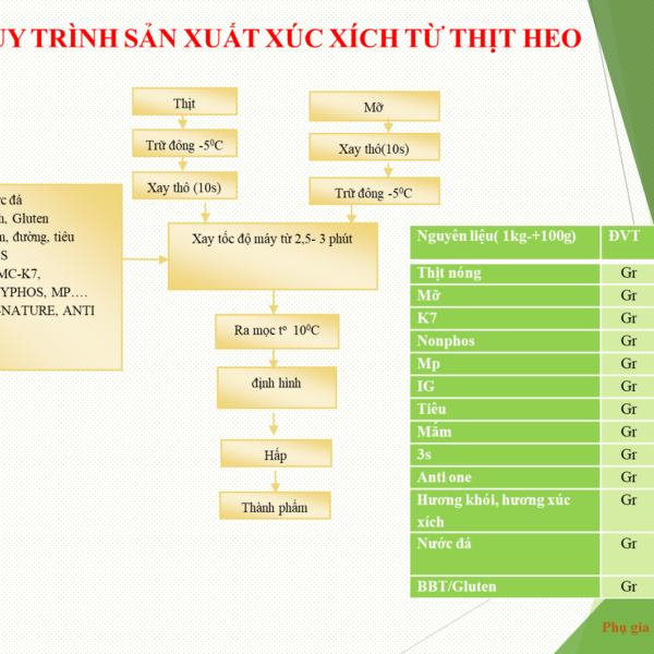 Công thức phụ gia cho thịt nóng /(1kg -+100g) thành phẩm: