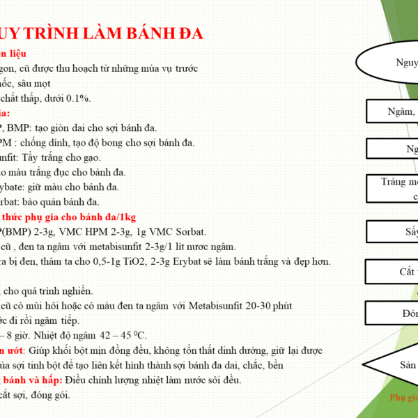 - VMC HPM : chống dính, tạo độ bong cho sợi bánh đa.