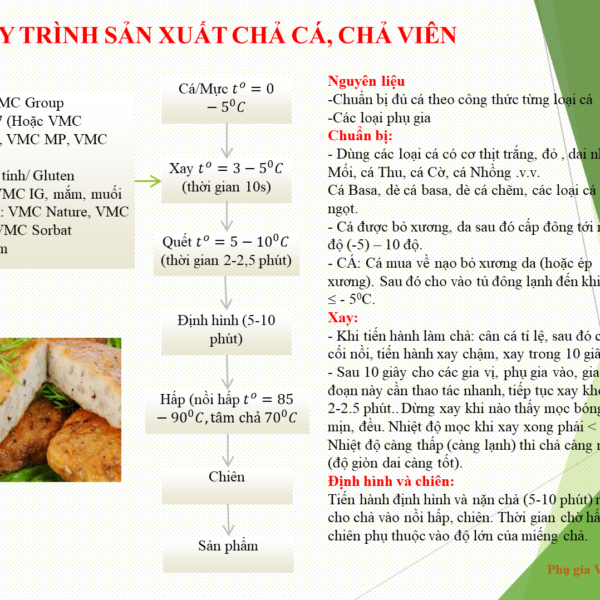 - VMC MP: tạo dẻo, hỗ trợ phục hồi cơ thịt cho cá đông lạnh, cá tạp , cá có cơ thịt yếu.