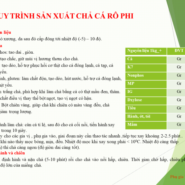 Công thức phụ gia cho chả cá /(1kg -+100g) thành phẩm: